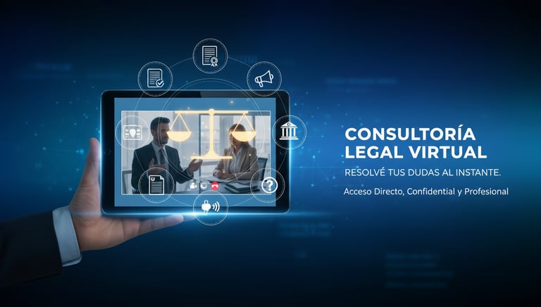 Accedé a nuestro servicio de consultoría legal virtual y resolvé tus dudas al instante. A través de una videollamada, te acompañamos en tus proyectos, evaluamos los riesgos legales de tus decisiones y te brindamos la orientación que necesitás para avanzar con total seguridad, sin moverte de tu casa u oficina.